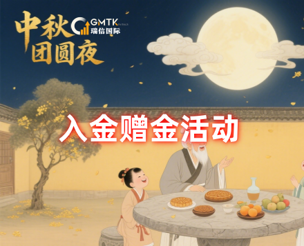 GMTK中秋入金赠金活动正在进行中。只要您完成对应交易手数,赠金您拿走。例如:A客户在活动期内净入金30000美元并在交易时间内完成30手交易手数,将会获得900美元赠金B客户在活动期内多次入金累积达8000美元,出金2000美元并完成交易手数5手,